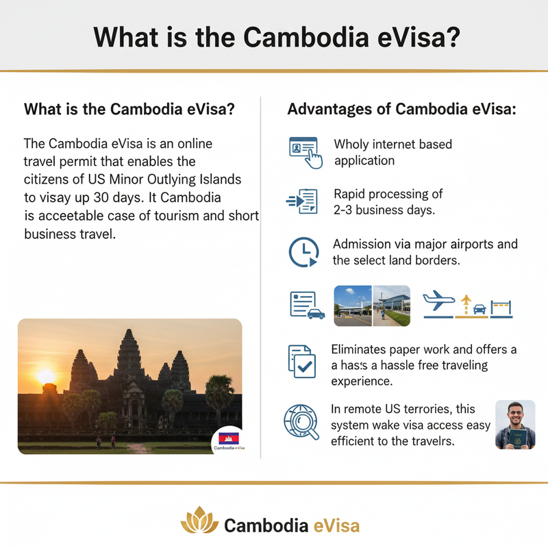 The Cambodia eVisa is an online travel permit that enables the citizens of US Minor Outlying Islands to visit Cambodia to stay up to 30 days. It is acceptable in case of tourism and short business travel.