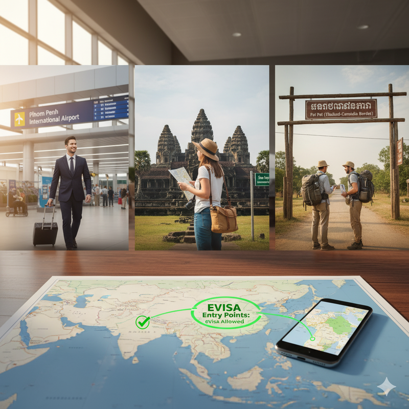 Your eVisa permits your entry via the major international airports in Cambodia and to certain land border crossings: