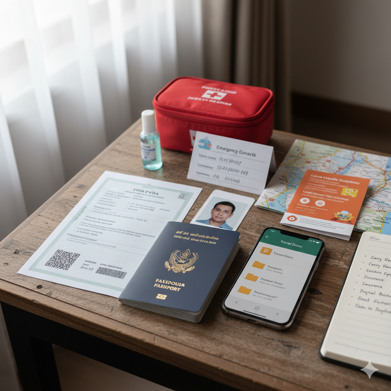 Passport, printed eVisa, hotel reservations and travel itinerary.