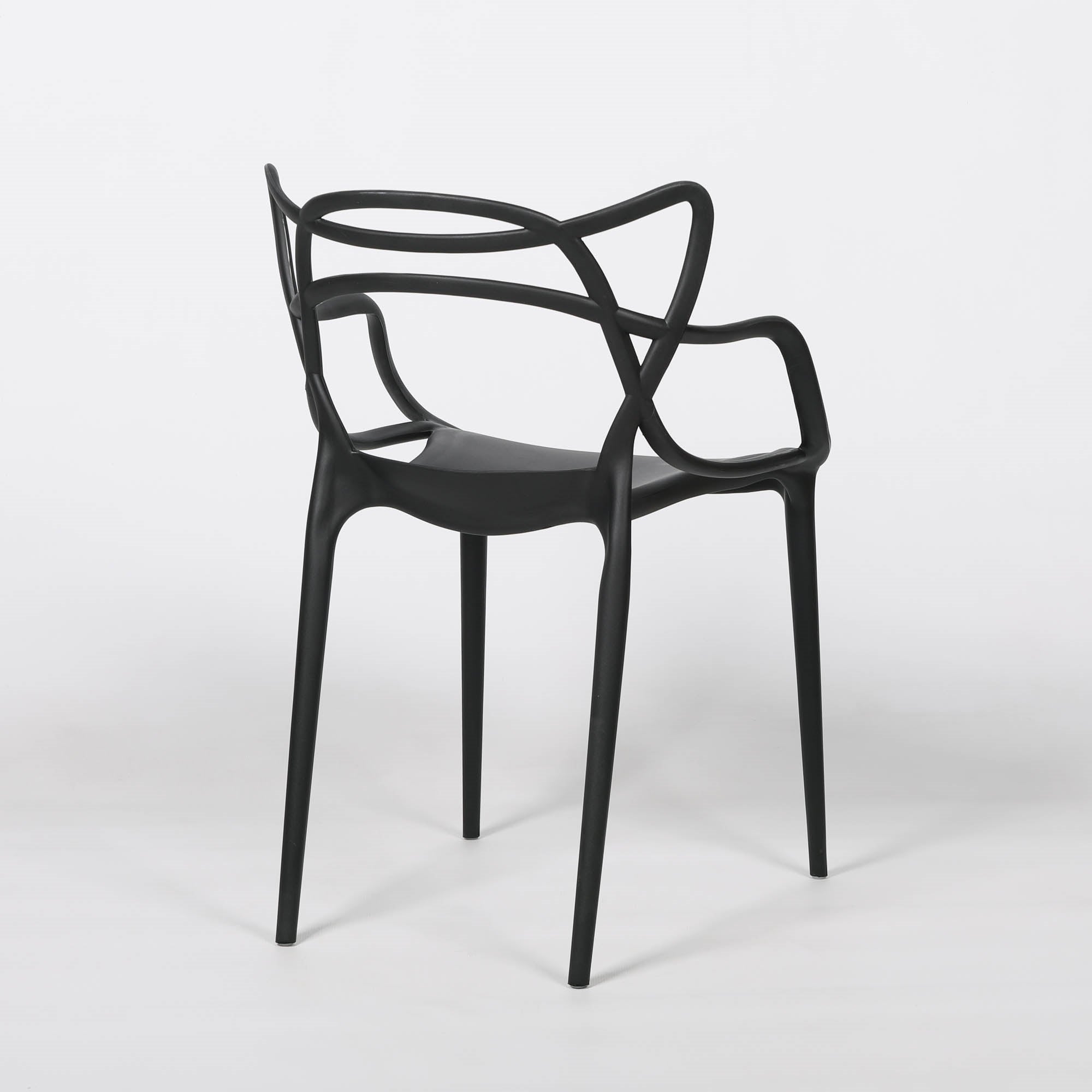 Whether placed around a rustic wooden table, a marble-top dining piece, or a sleek glass setting, the Black Masters Dining Chair enhances the space with its contemporary charm. Its flowing lines and open-back design provide excellent comfort for long dinners, conversations, and gatherings, ensuring that your dining moments are not only stylish but deeply enjoyable.