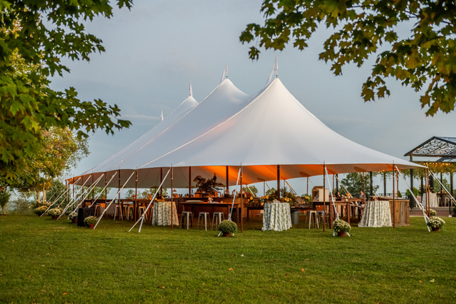 These small touches turn a standard canopy into a welcoming outdoor venue.