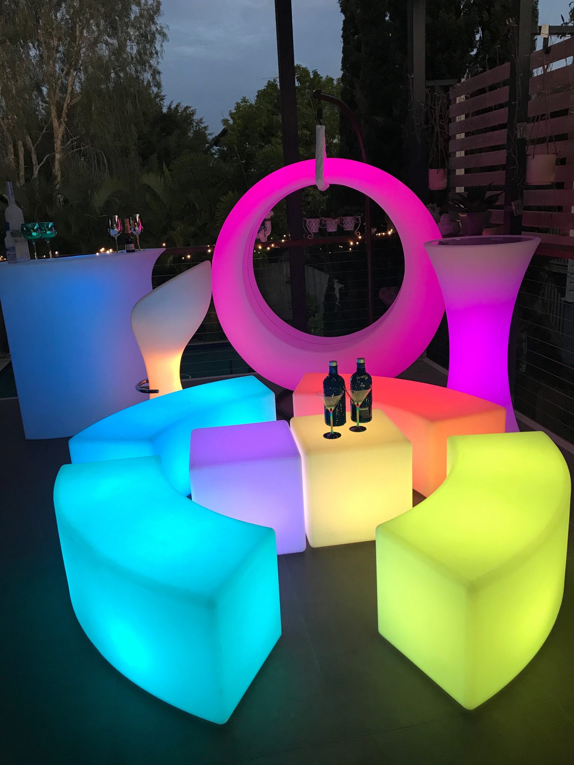 A standout trend rapidly gaining popularity is the use of Illuminated Furniture. This includes glowing bars, light-up tables, LED cubes, and illuminated stools that add a vibrant atmosphere to evening events. Beyond aesthetics, this type of furniture provides functional lighting—enhancing visibility in darker environments while reducing the need for additional light fixtures. Guests love the playful ambiance and photo-worthy backdrops created by these futuristic pieces.
