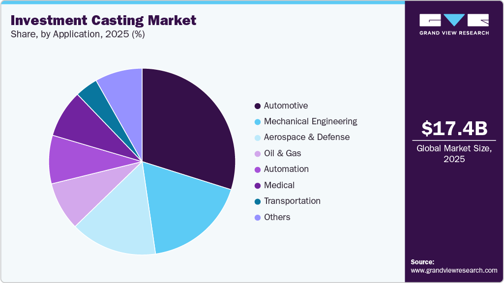 The medical device industry has emerged as a rapidly growing end-use segment for investment casting. Aging populations, expanding healthcare access, and increasing surgical procedures are driving demand for precision-engineered components such as surgical instruments, dental fixtures, and orthopedic implants. Investment casting enables the production of biocompatible and corrosion-resistant components using materials such as stainless steel, titanium, and cobalt-chrome alloys. Its ability to deliver complex designs with smooth surface finishes makes it especially suitable for medical applications that require high precision, cleanliness, and patient safety compliance.