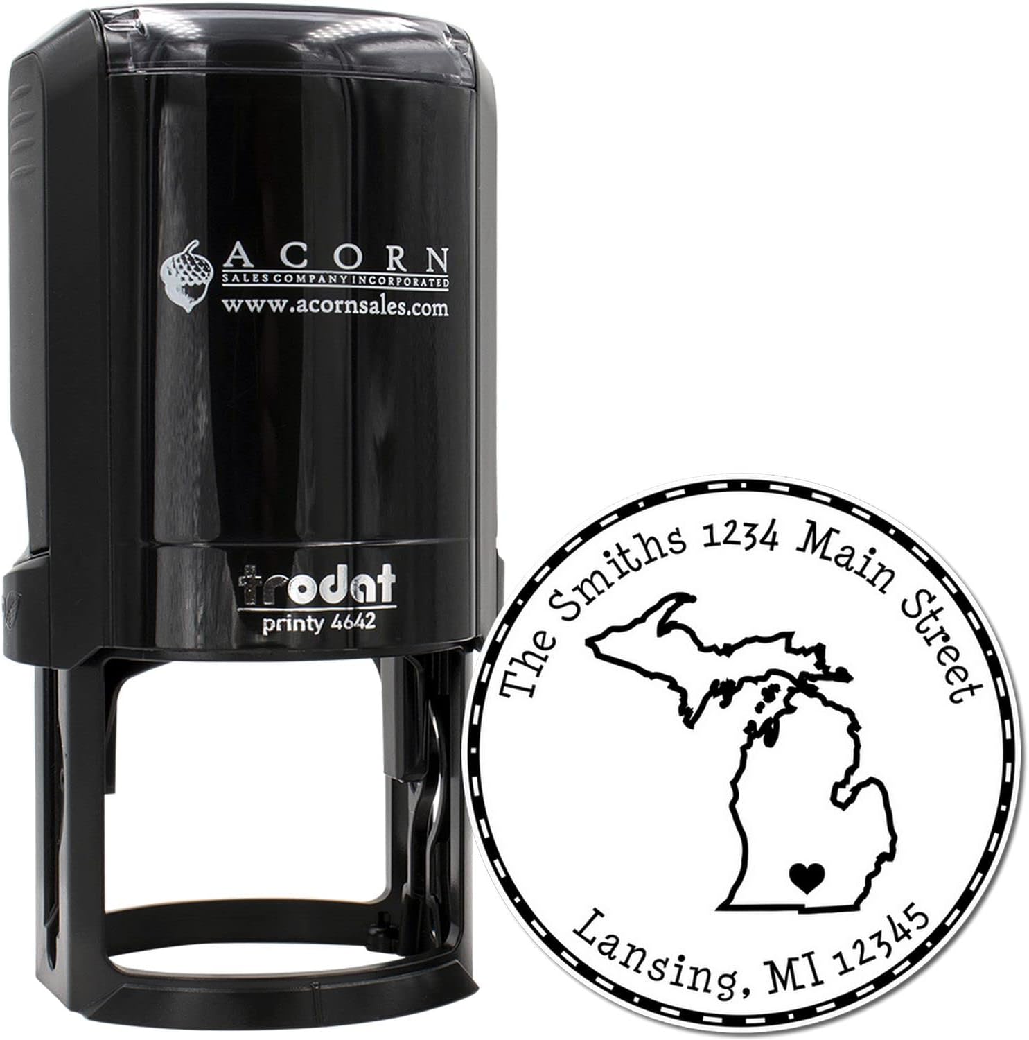Quality is at the heart of every product offered by Acorn Sales. The Michigan Return Address Stamp is built with a precision laser-cut die, guaranteeing sharp, clean impressions time after time. With an impression area of 1-5/8 inches in diameter, your address remains clear, balanced, and visually appealing.