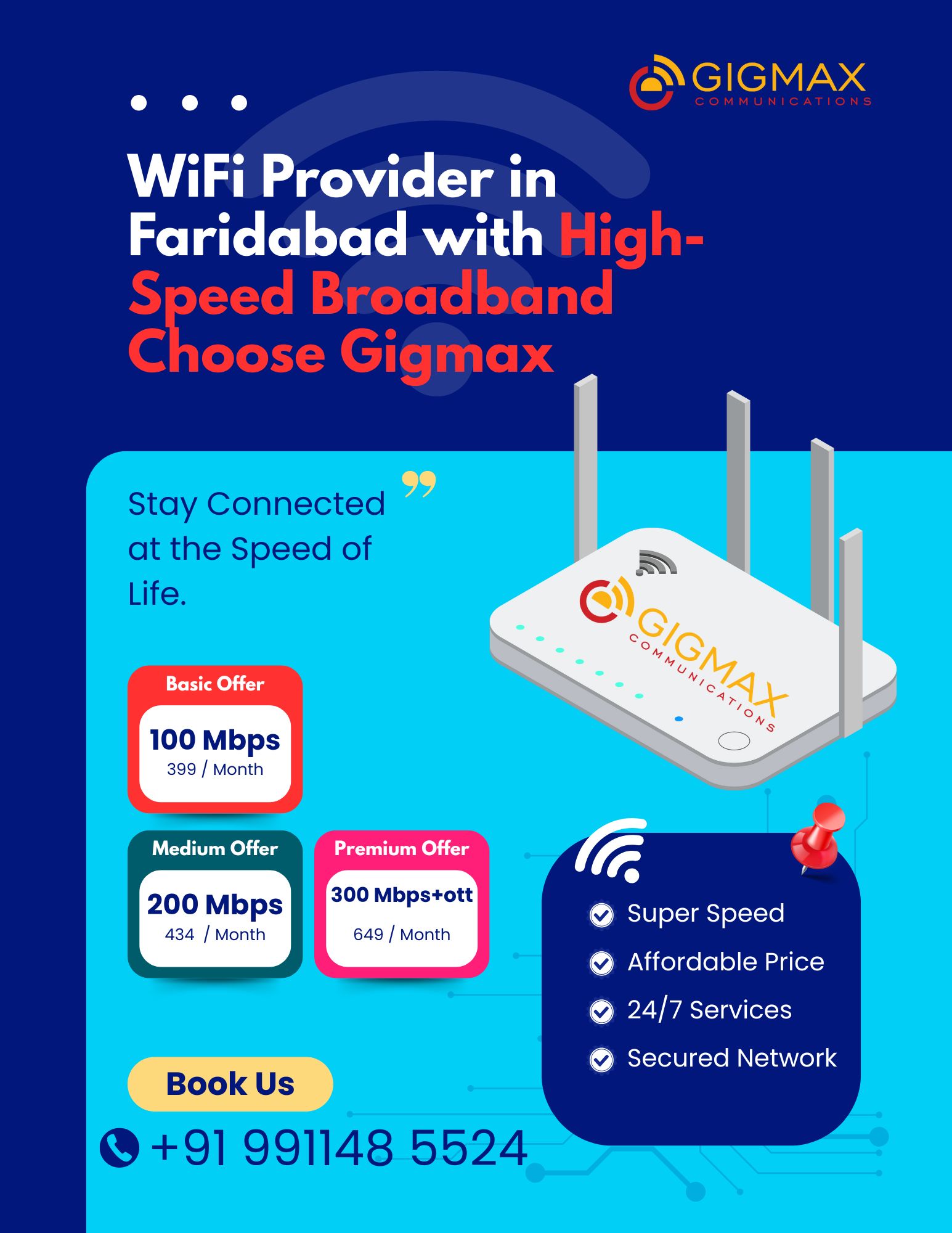 As Faridabad continues to grow as a key urban center, the demand for better internet will only rise. Choosing the right WiFi provider in Faridabad ensures that you stay connected without facing frequent lags, downtime, or poor customer support. Gigmax stands out by offering reliable, fast, and affordable internet services in Faridabad, backed by strong local support and modern infrastructure.