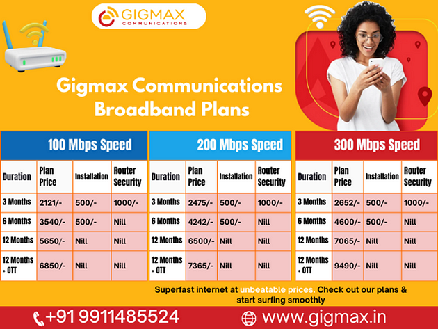 If you're tired of buffering, slow downloads, or frequent disconnections, it’s time to switch to a provider that truly understands your needs. Go with a trusted name in high speed broadband in Faridabad—Go with Gigmax.