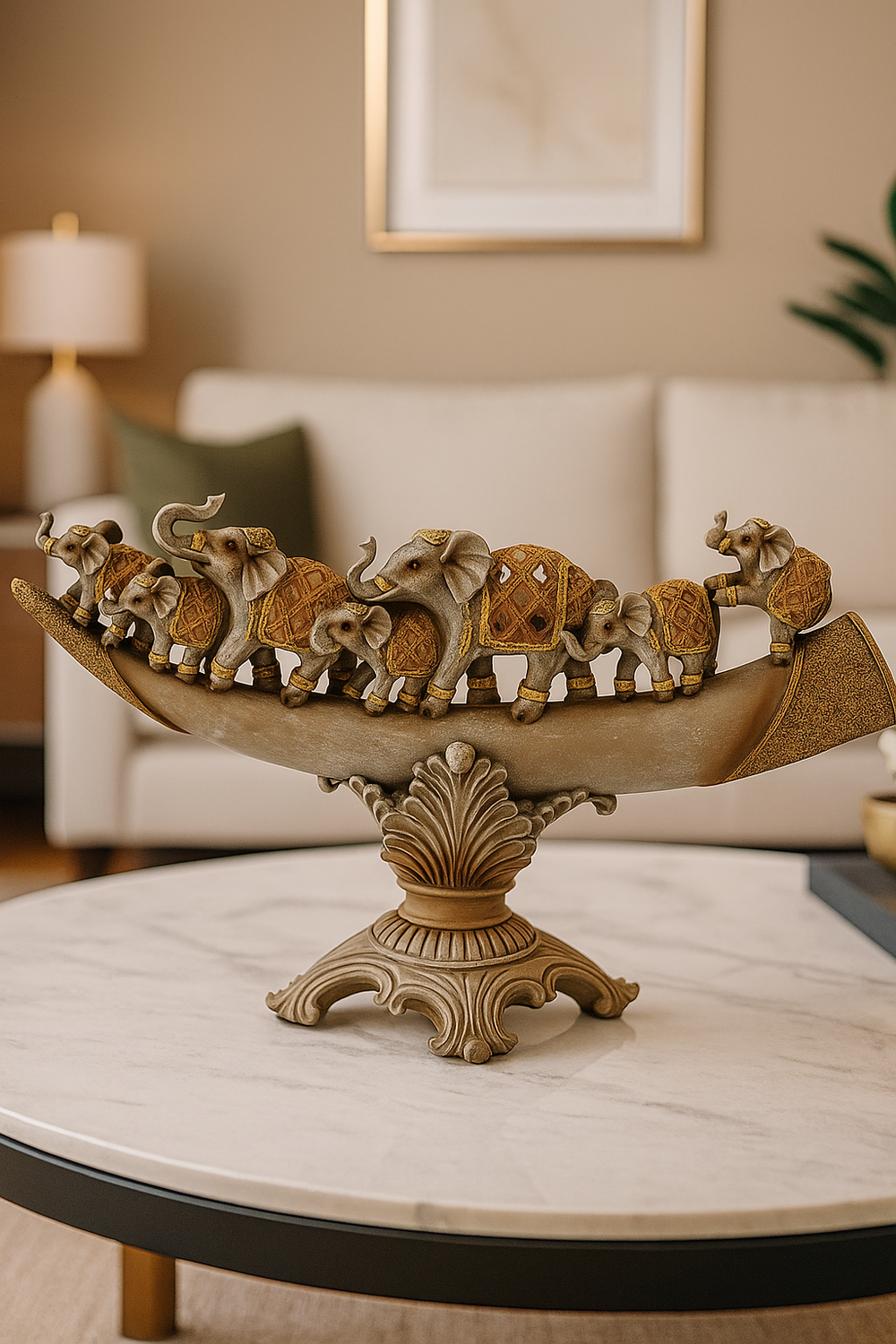 Our exclusive Elephant Family Decor Showpiece is more than just a decorative item—it's a symbol of family unity, strength, and good fortune. Crafted with exquisite attention to detail, this sculpture captures a family of elephants in a serene, harmonious stance. The design is infused with emotion, representing togetherness and the nurturing spirit of family bonds. The refined craftsmanship and realistic detailing bring life and elegance to any corner of your home.