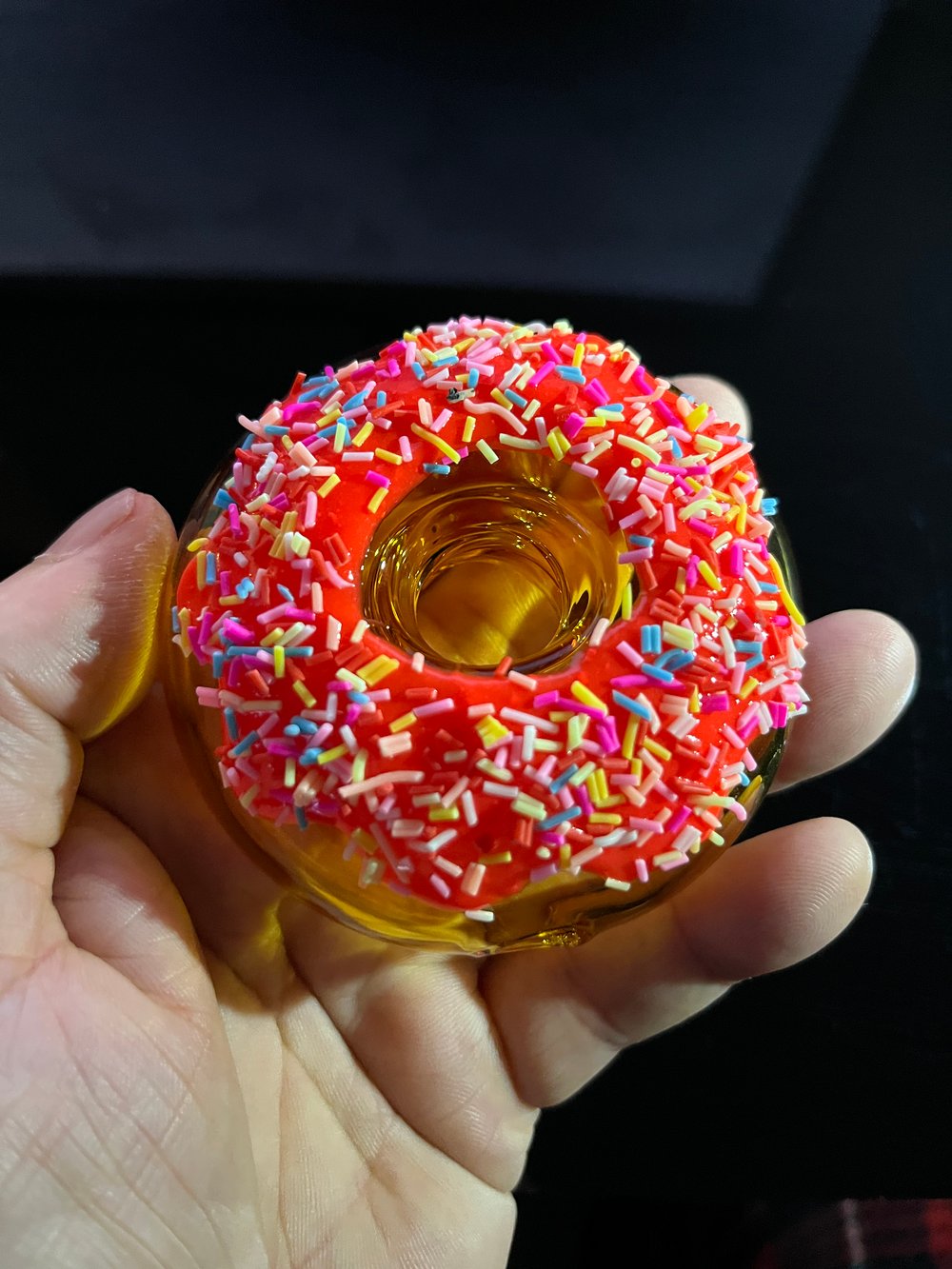 ● After your session, inhale the remaining smoke to clean the chamber and let the item settle. The donut's round base keeps the pipe stable on a level surface.