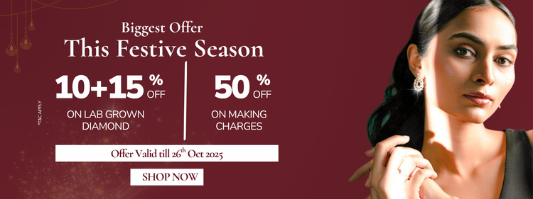 Here’s what’s on the table: 🌟 10% + 15% OFF on LAB GROWN DIAMONDS 💎 50% OFF on Making Charges 🗓️ Offer valid till 26th October 2025